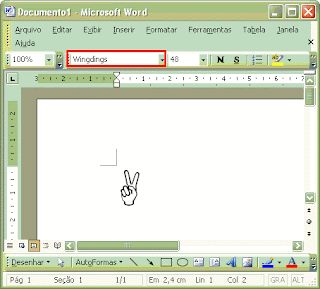 Para mostrar este exemplo eu usei uma fonte chamada "Wingdings" que normalmente já vem instalada nos computadores com Windows.